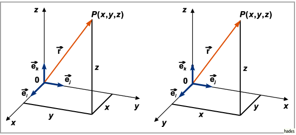 Linke Abbildung: Das kartesische Koordinatensystem mit den Koordinatenachsen