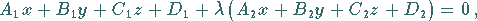 Die Gleichung einer Ebene, die durch die Schnittlinie zweier Ebenen mit den Gleichungen