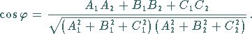 Die Winkel zwischen zwei Ebenen, gegeben durch die zwei Gleichungen