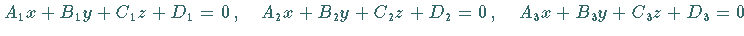 Die Koordinaten des Schnittpunktes dreier Ebenen, gegeben durch die drei Gleichungen