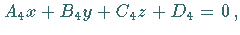 Die Koordinaten des Schnittpunktes von vier Ebenen, gegeben durch die vier Gleichungen