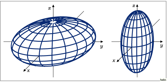 Die zwei Formen des Rotationsellipsoids entstehen durch Rotation einer Ellipse in der