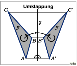 Der Umlaufsinn der gedrehten Figur wird bei der Spiegelung an der Geraden