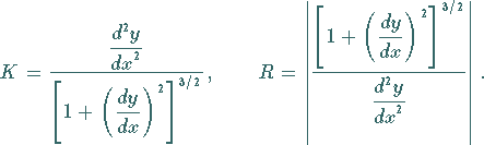 Formeln für Krümmung und Krümmungskreisradius