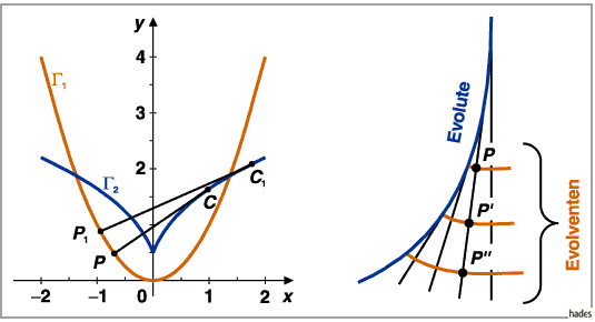 Evolute einer gegebenen Kurve heißt eine zweite Kurve, die aus den