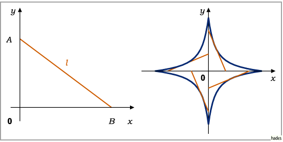Es ist die Gleichung der Geradenschar zu bestimmen, die dadurch entsteht, daß die Enden einer Strecke entlang der Koordinatenachsen gleiten.