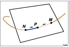 3. Schmiegungsebene wird die Grenzlage einer Ebene genannt, die durch drei