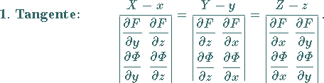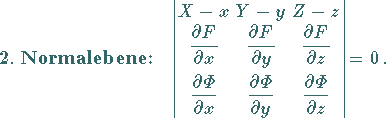 Koordinaten der Tangente bzw. der Normalebene; die partiellen Ableitungen beziehen sich