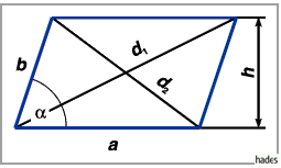 Für den Zusammenhang zwischen Diagonalen, Seiten, Höhe und für den Flächeninhalt