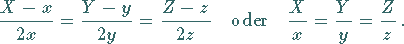 | Art der Gleichung | Tangentialebene | Flächennormale |