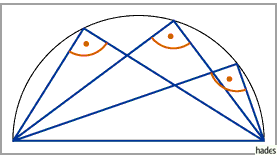 Halbkreis über der Hypotenuse, d.h., alle Peripheriewinkel bezüglich