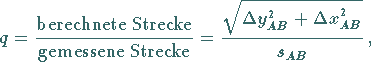 örtlich gemessenen Strecke und der aus den Koordinaten berechneten Strecke mit dem