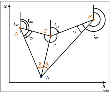 Nach SNELLIUS kann das Rückwärtseinschneiden eines Neupunktes