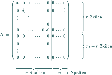 heißt Singulärwertzerlegung der Matrix Die Matrix ist wie die Matrix vom Typ und enthält bis auf die ersten Diagonalelemente nur Nullen. Dabei sind die die Singulärwerte von