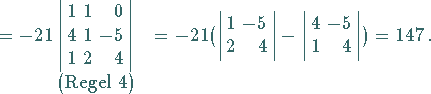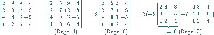 Zweckmäßigerweise werden die einzelnen Determinanten mit Hilfe der Rechenregeln