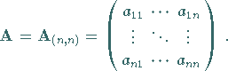 Quadratische Matrizen besitzen die gleiche Anzahl von Zeilen und Spalten, d.h.