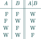mit folgenden Wahrheitstafeln: