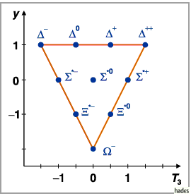 In der folgenden Abbildung ist das Dekuplett der Baryonen mit dem Spin