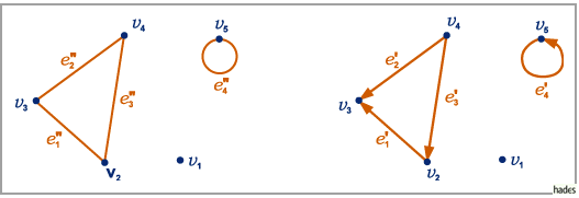 einem gerichteten Graphen (rechte Abbildung). Die Elemente von