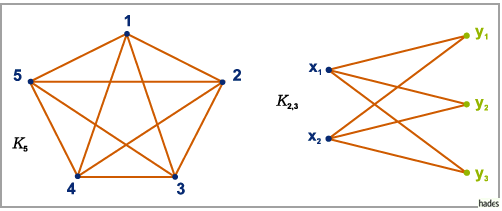 Die rechte Abbildung zeigt einen vollständigen paaren Graphen mit
