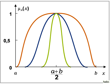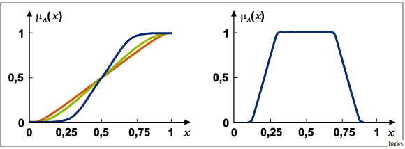 Zugehörigkeitsfunktionen erhält man durch eine Transformation wobei für In der Praxis sind Polynome für die Transformation gut geeignet. Im Intervall