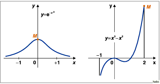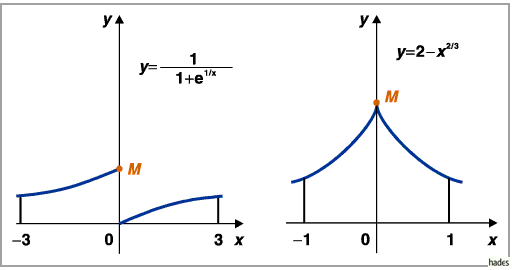(rechte Abbildung, Maximum, unendliche Ableitung).