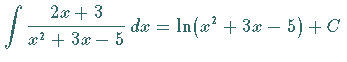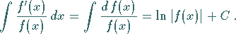 Wenn der Integrand ein Bruch ist, in dem der Zähler die Ableitung des Nenners ist, dann ist das Integral gleich dem Logarithmus des Nenners: