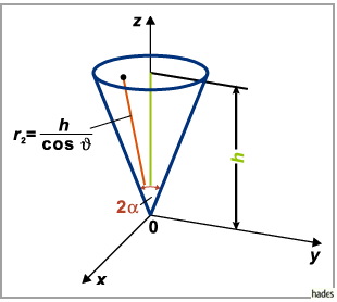 ist für einen Kegel zu berechnen, dessen Spitze sich im Ursprung des Koordinatensystems