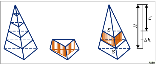 Volumina dünner Pyramidenstümpfe (s. mittlere Abbildung):
