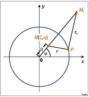 für den Fall, daß das betrachtete Gebiet ein Kreis ist (s. Abbildung).