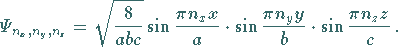 Die Eigenfunktionen verschwinden an den Wänden, weil eine der drei Sinusfunktionen