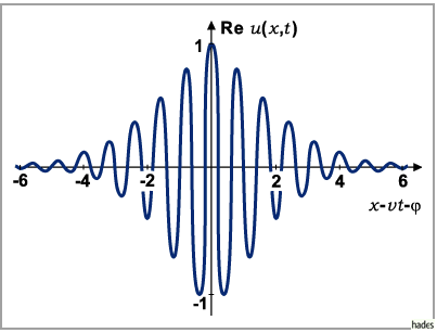 Die Einhüllende des Wellenpakets bewegt sich mit der Geschwindigkeit