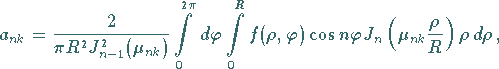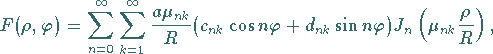 Beschreibung der Schwingungen einer runden, am Rande eingespannten Membran.
